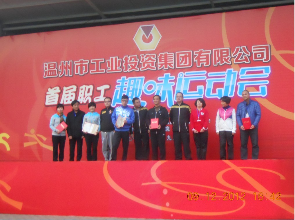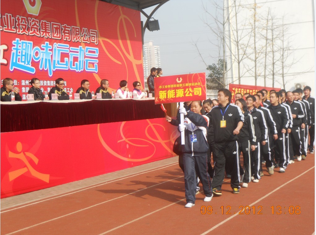 为了丰富集团职工业余文化活动,进一步增强集团公司干部职工凝聚力和团结协作力,2012年12月9日下午,由集团举办的首届“职工趣味运动会”在温州机电技师学院顺利举行。集团公司董事长、党委书记周新波、总经理张志东、市总工会副主席刘金丹、集团公司常务副总经理邓德胜、副总经理南琪、纪委书记林丹艳、国资委人事处副处长马元军、集团公司工会主席凌虹等在主席台就座。