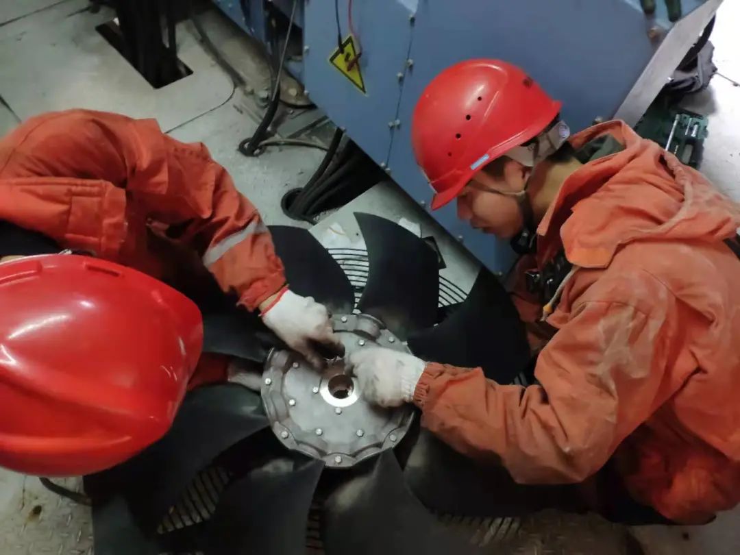 临近春节,运行人员林正杰带领班组成员例行巡检,这时监控主机报警显示9号风机液压油位低、系统压力低故障,经现场排查后判定为高速闸漏油。“可能是密封圈老化导致漏油,我们要马上进行抢修”只见林正杰说完,转身冲向设备间方向,携带特定维修工具与运行班组驱车前往故障点。