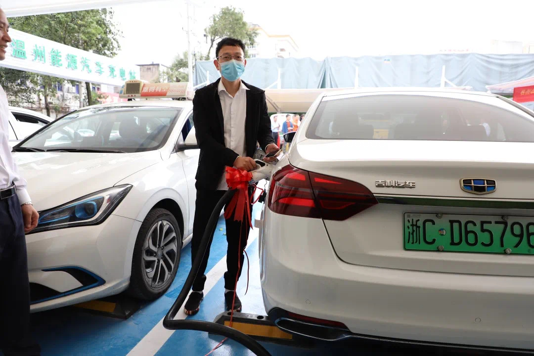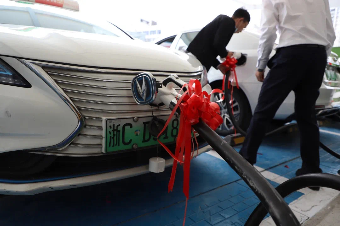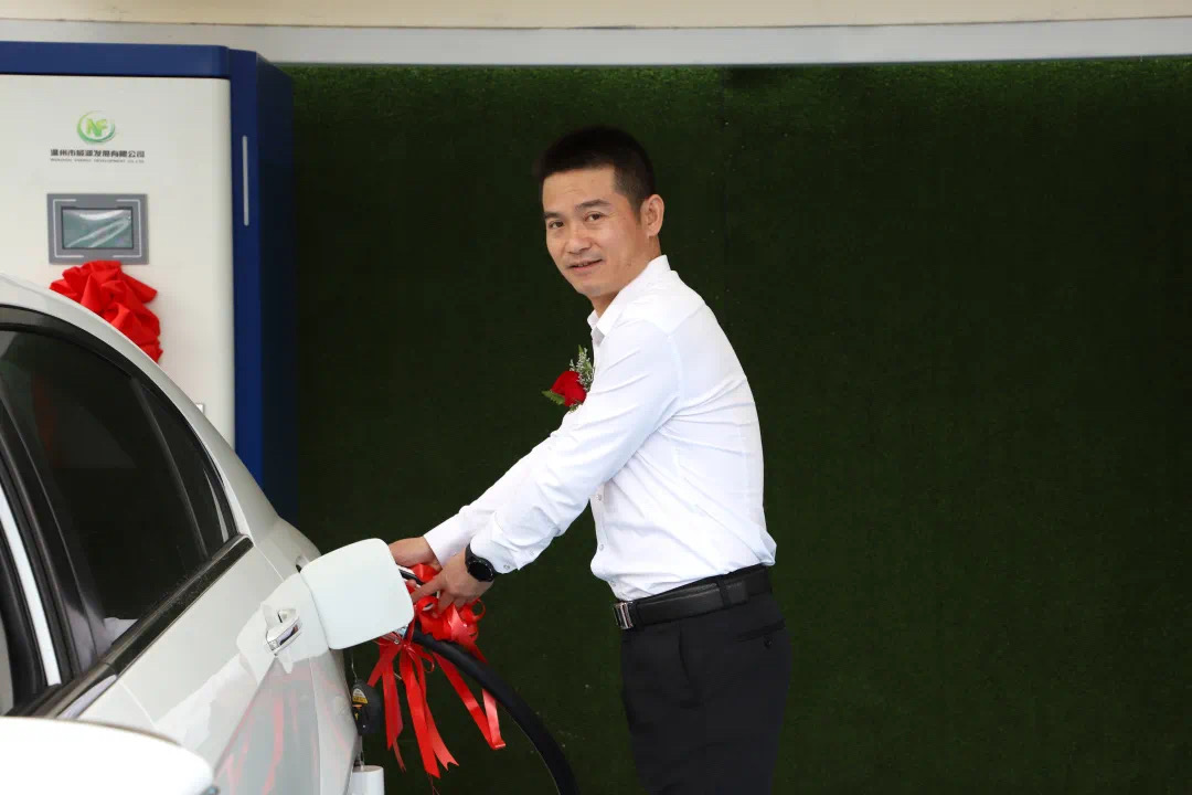 必赢亚州242.net董事长为充电站第一辆新能源汽车充电